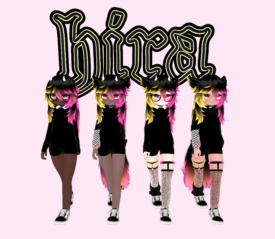 - Toggles: ears, horns, tail, hoodie → sweater, fishnets, glasses