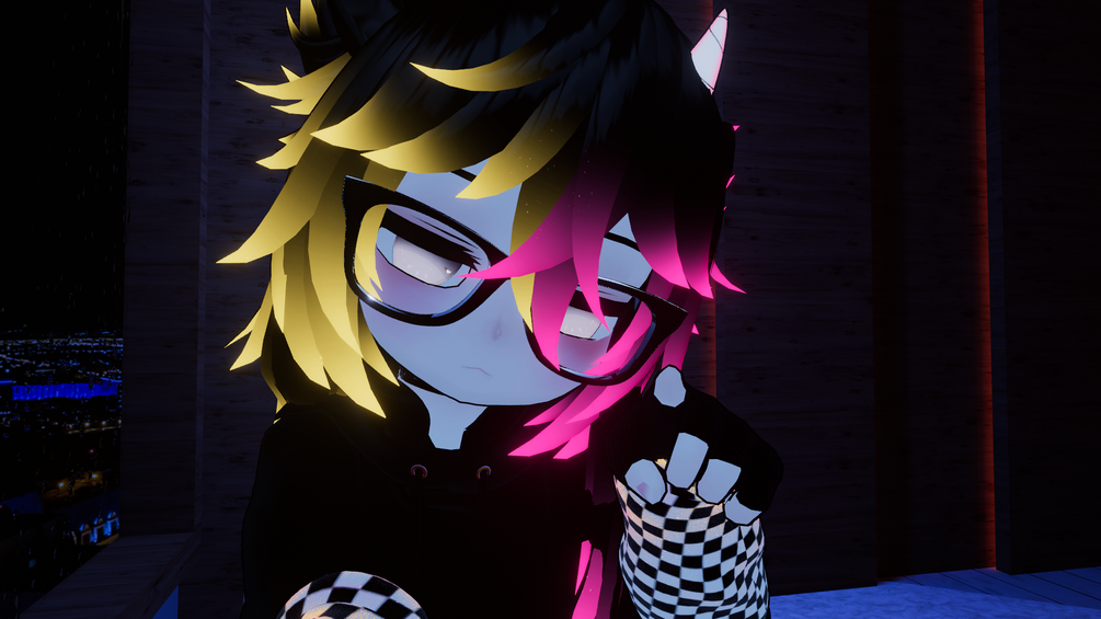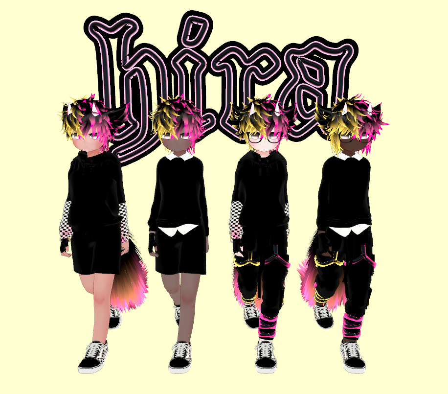 - Toggles: ears, horns, tail, hoodie → sweater, fishnets, glasses